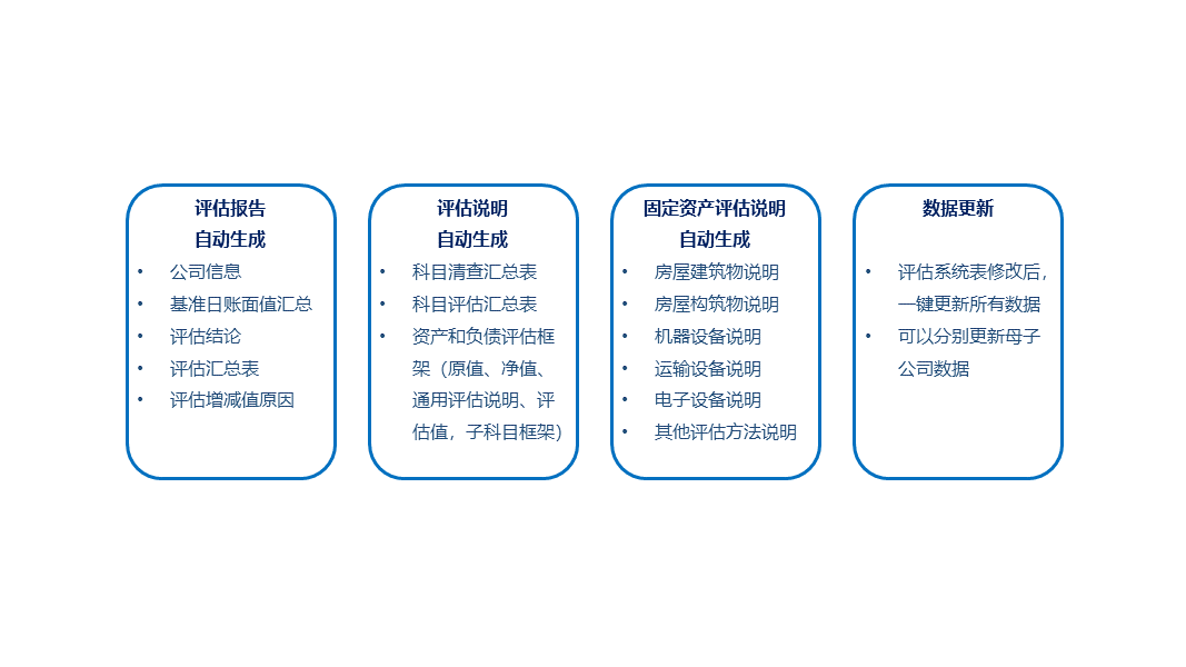 4、自动生成资产评估说明框架;依据底稿系统自动更新数据;